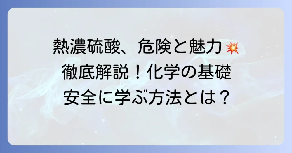 化学の世界には、その性質や反応によって私たちの生活を支える一方で、取り扱いには細心の注意が必要な物質が数多く存在します。その中でも「熱濃硫酸」は、非常に強力…