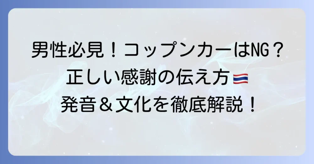 コップンカーは男性の正しい使い方!発音からタイ文化まで徹底解説