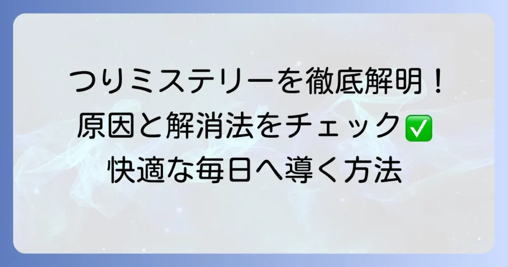 体のあちこちで突然起こるつらい「つり」に悩まされていませんか?特に夜中や運動中に起こると、その痛みは日常生活に大きな影響を与えます。本記事では、体のあちこち… -