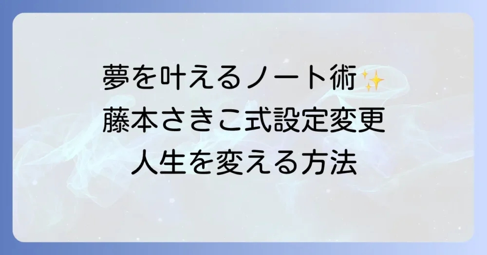 「なんだかうまくいかない」「もっと理想の自分になりたい」と感じていませんか?そんなあなたに、藤本さきこさんが提唱する「設定変更ノート術」が力になります。本記… -