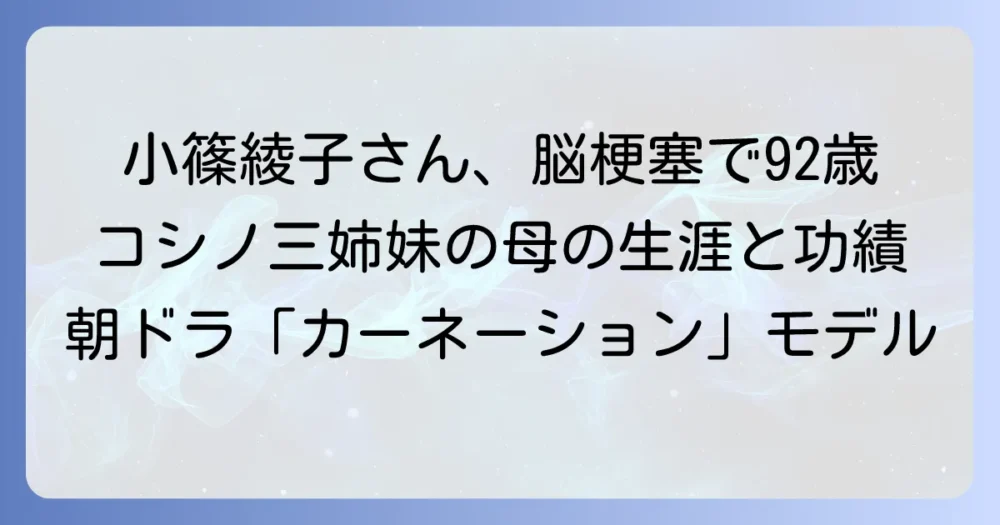 日本のファッション界に多大な影響を与え、コシノ三姉妹の母としても知られる小篠綾子さん。彼女の死因について知りたいと考える方は少なくありません。本記事では、小… -