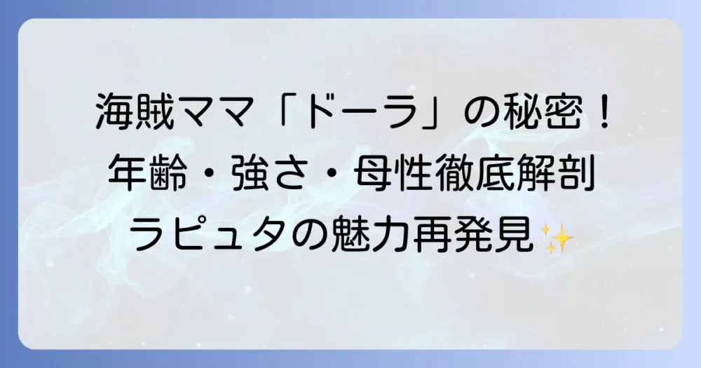 スタジオジブリの名作「天空の城ラピュタ」に登場する、豪快で情に厚い海賊の女頭領ドーラ。彼女は多くのファンから「海賊ママ」の愛称で親しまれ、その圧倒的な存在感… -