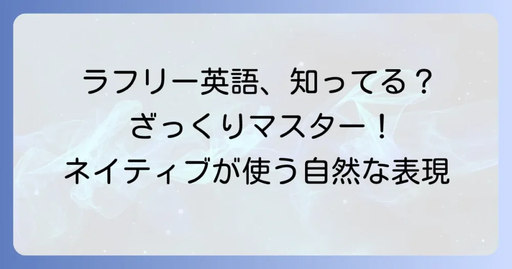 「ラフリー」という言葉を聞いて、どのような意味かすぐに分かりますか?英語学習者にとって、”roughly”は「おおよそ」「だいたい」といった意味で非常に役立つ副詞です… -