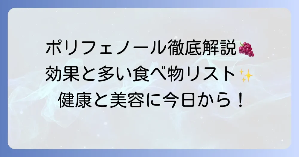 「ポリフェノール」という言葉はよく耳にするけれど、具体的にどんな食べ物に多く含まれていて、どんな効果があるのか、そしてどうすれば効率よく摂取できるのか、気に… -