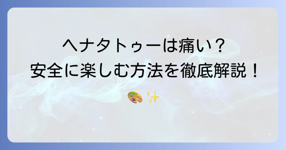 ヘナタトゥーの魅力に惹かれつつも、「痛いのではないか」と不安を感じている方は少なくありません。本記事では、ヘナタトゥーの痛みに関する疑問を解消し、安全に楽し… -