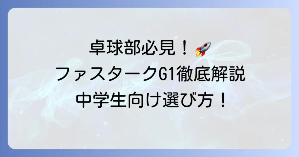 卓球部の中学生の皆さん、ラバー選びで悩んでいませんか?数あるラバーの中でも、ニッタクの「ファスタークG1」は、その高い性能から多くの選手に注目されています。し… -
