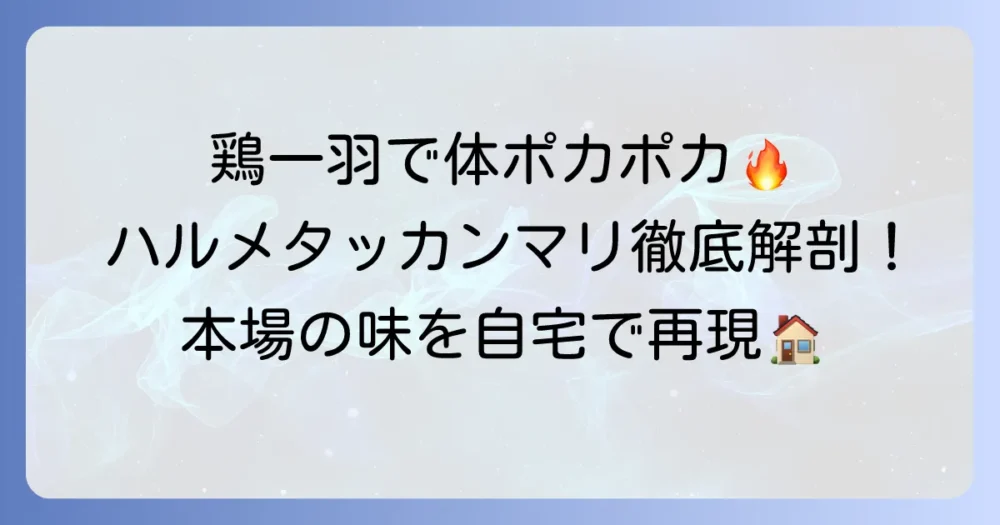 肌寒い季節や、ちょっと元気を出したい時に恋しくなる韓国料理。その中でも、鶏一羽を丸ごと煮込んだ「ハルメタッカンマリ」は、心も体も温まる絶品鍋料理として多くの… -