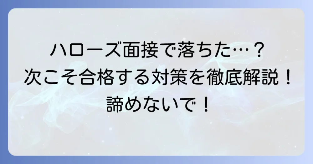 ハローズの面接に落ちてしまい、悔しい気持ちや不安な気持ちでいっぱいになっている方もいるかもしれません。しかし、面接に落ちることは決して珍しいことではありませ… -