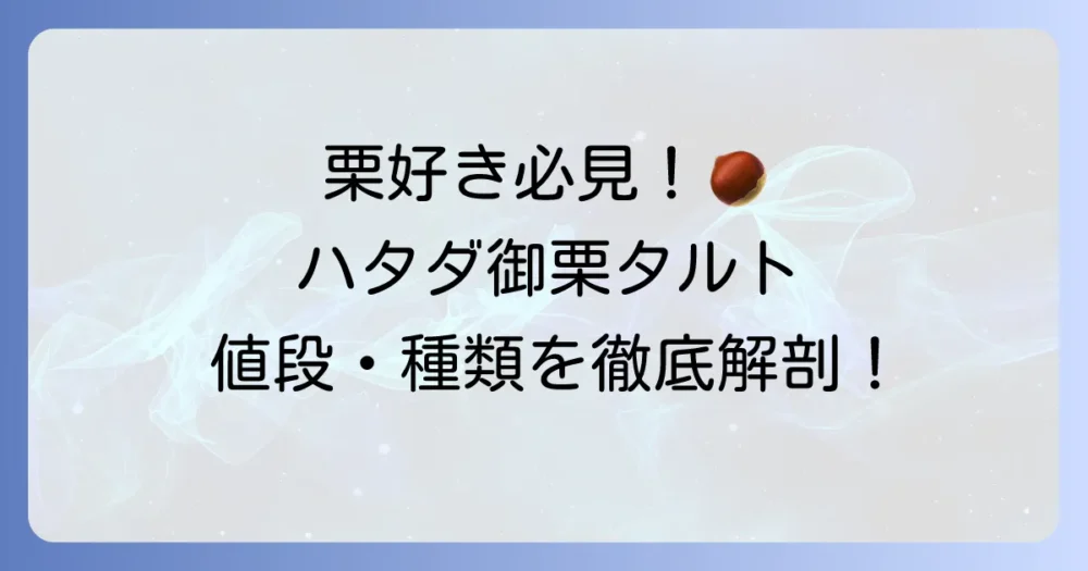 愛媛の銘菓として知られる「ハタダ御栗タルト」は、その贅沢な栗の味わいと上品な甘さで多くの人々を魅了しています。しかし、いざ購入しようとすると「値段はいくらだ… -