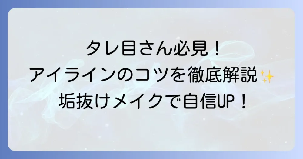 タレ目のあなたは、その優しい目元がチャームポイントですよね。しかし、「いつも困っているように見られる」「幼く見られがち」といった悩みを抱えている方もいるかも… -
