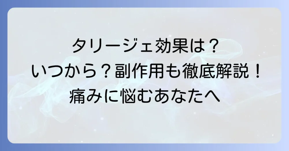 神経障害性疼痛に悩む方にとって、タリージェは大切な治療薬の一つです。しかし、薬の費用は毎日の生活に大きく影響するため、「タリージェの後発品(ジェネリック医薬… -