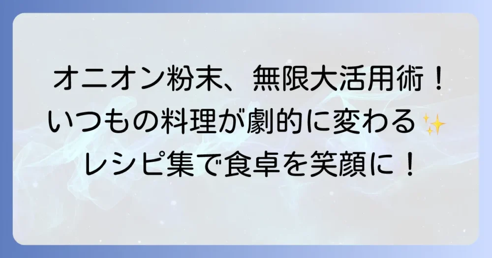 「オニオンスープの粉末、使い道はスープだけ?」そう思っていませんか?実は、この小さな一袋には、いつもの料理を格上げする無限の可能性が秘められています。忙しい… -