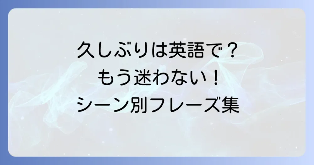 久しぶりに会う友人や知人、ビジネスパートナーに「ひさしぶりですね」と英語で伝えたい時、どんな表現を使えば良いか迷うことはありませんか?本記事では、カジュアル… -