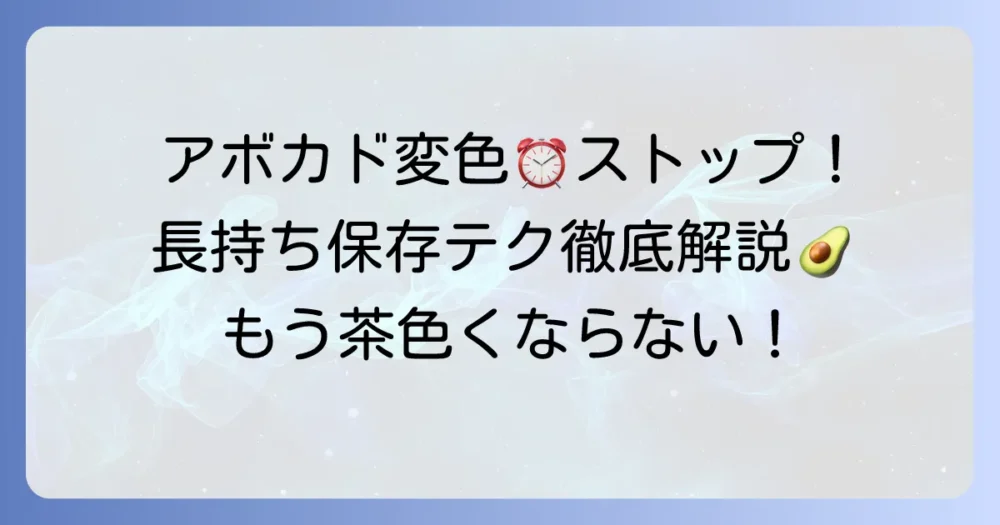 クリーミーで栄養満点のアボカドは、サラダや和え物、ディップなど様々な料理に大活躍する食材です。しかし、一度切ってしまうと、あっという間に茶色く変色してしまう… -