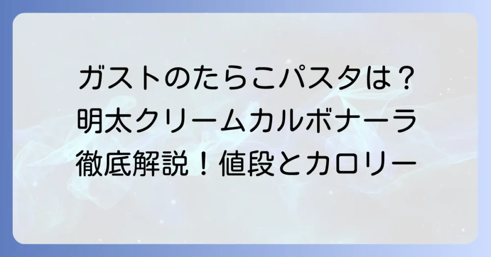 ガストで「たらこパスタ」を食べたいと思っているあなたへ。手軽に美味しいパスタを楽しめるガストですが、現在のメニューには「たらこパスタ」という名前のものは見当… -
