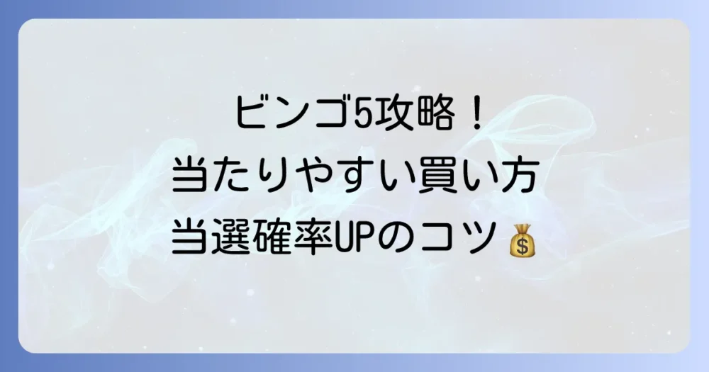 「ビンゴ5でなかなか当たらない」「どうすれば当選確率を上げられるの?」そんな悩みを抱えていませんか?ビンゴ5は、数字選択式宝くじの中でも比較的当たりやすいと言… -