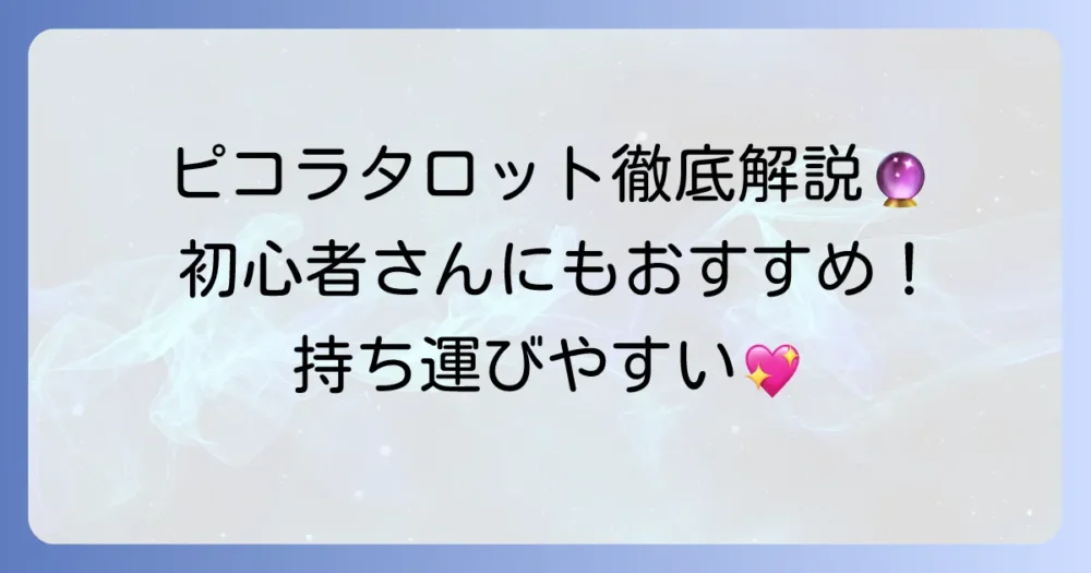 「ピコラタロット」という言葉を聞いて、どんなタロットカードを想像しますか?もしかしたら、その可愛らしい響きから、小さなタロットカードを思い浮かべる方もいるか… -