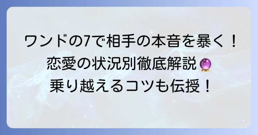 タロット占いで「ワンドの7」が出たとき、相手の気持ちが気になっていませんか?このカードは、一見すると争いや困難を示唆するように見えますが、実は相手の秘めた情熱… -