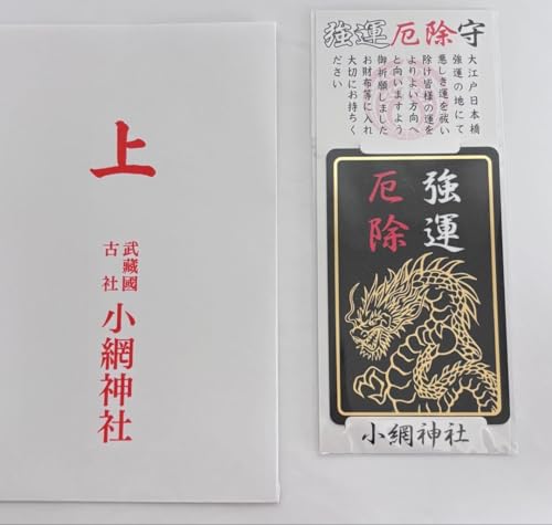 小綱神社では、様々な種類のお守りや御朱印が授与されています。ご利益の種類に合わせて選ぶことができ、参拝の記念やお守りとして持ち帰ることで、日々の生活に神様の加護を感じられるでしょう。人気のお守りには、強運厄除けを願う「強運厄除カード守」や「龍守」、財運向上を願う「財運向上カード守」、女性に人気の「強運のしずく玉守」などがあります。